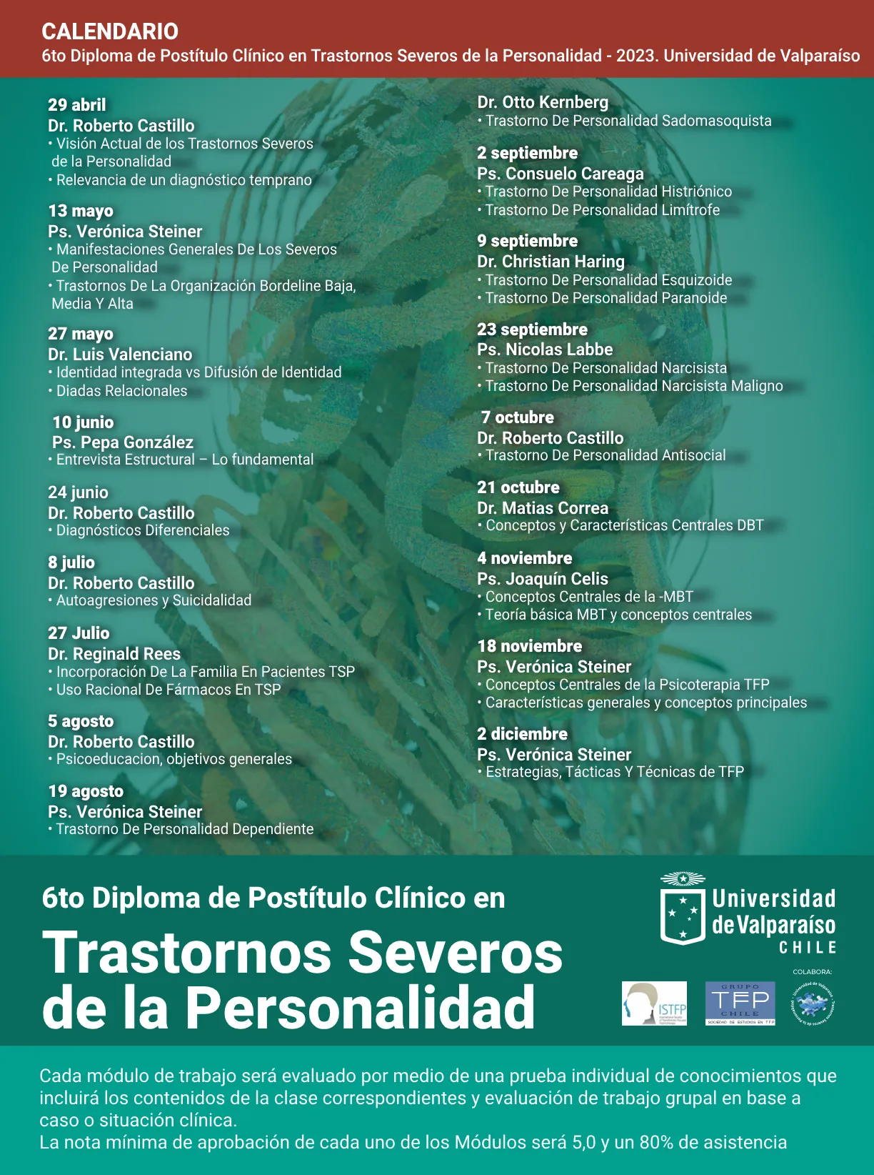 Seminarios, Jornadas De Trastornos Severos De La Personalidad, Jornadas De Actualizaciones En Psiquiatra, Capacitación en salud Mental APS, y muchos más.